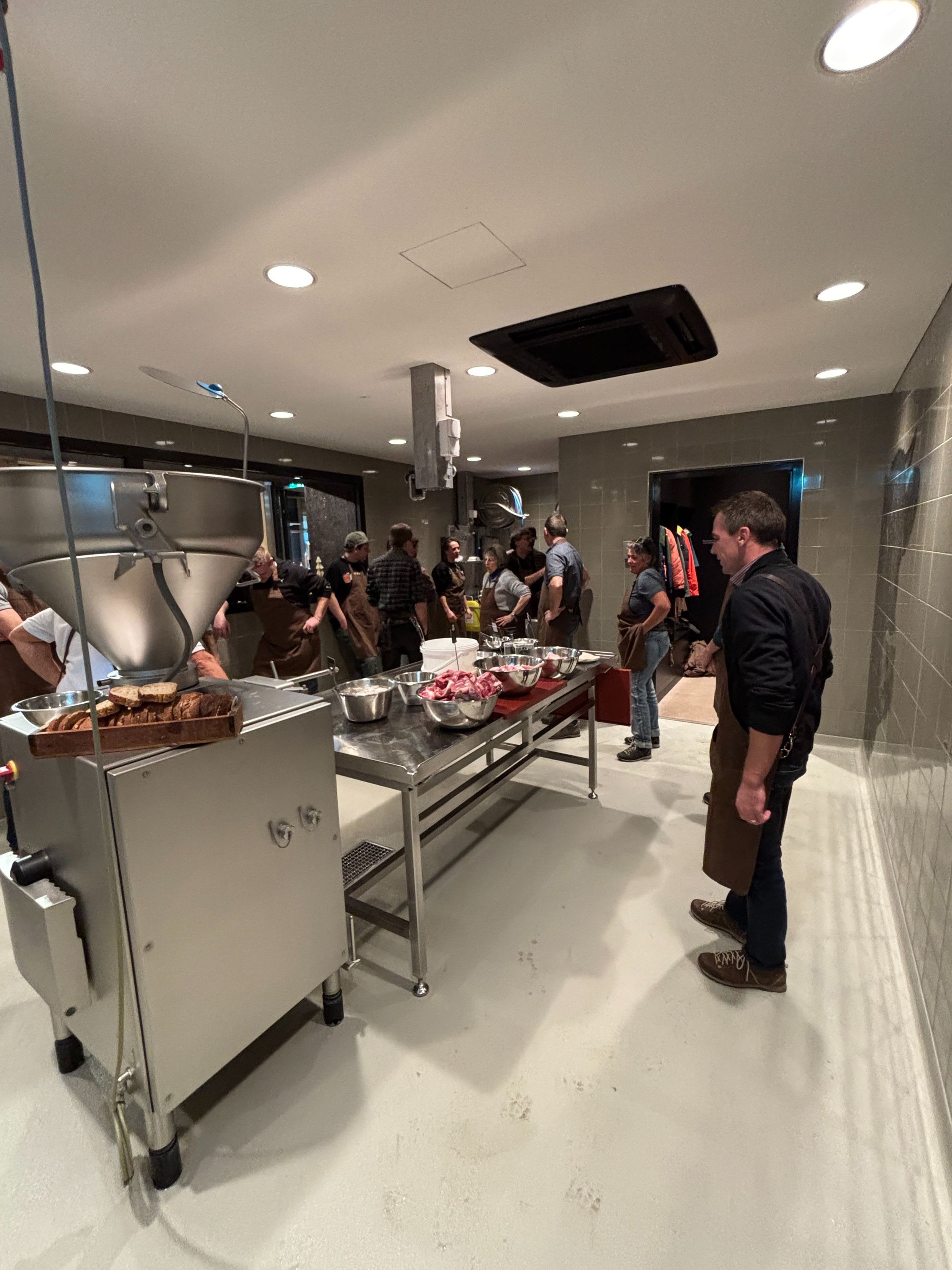 Unser diesjähriges Weihnachtsessen stand ganz im Zeichen von Genuss, Handwerk und gemeinsamen Erlebnissen. Den Auftakt machte der Besuch im Gustarium, wo wir in einem spannenden Kurzseminar in die Kunst des Wurstens eingeführt wurden. Mit viel Fachwissen und Leidenschaft erhielten wir einen Einblick in die Techniken und die Verwendung hochwertiger Zutaten.