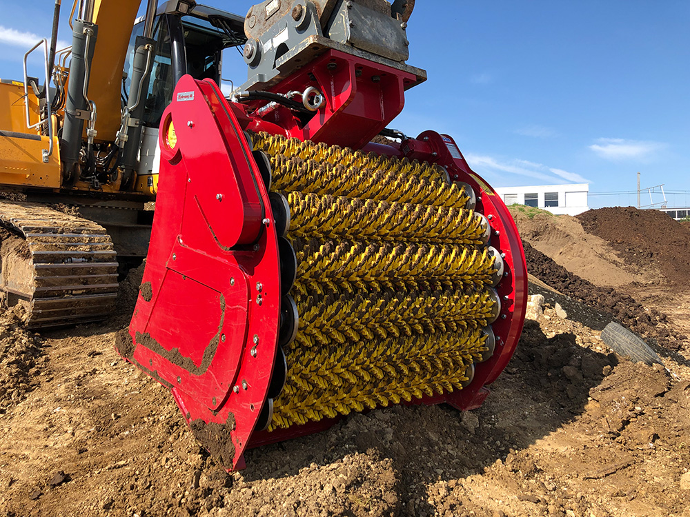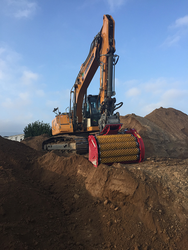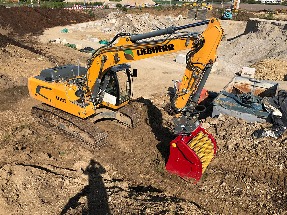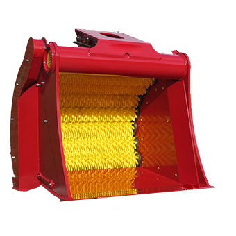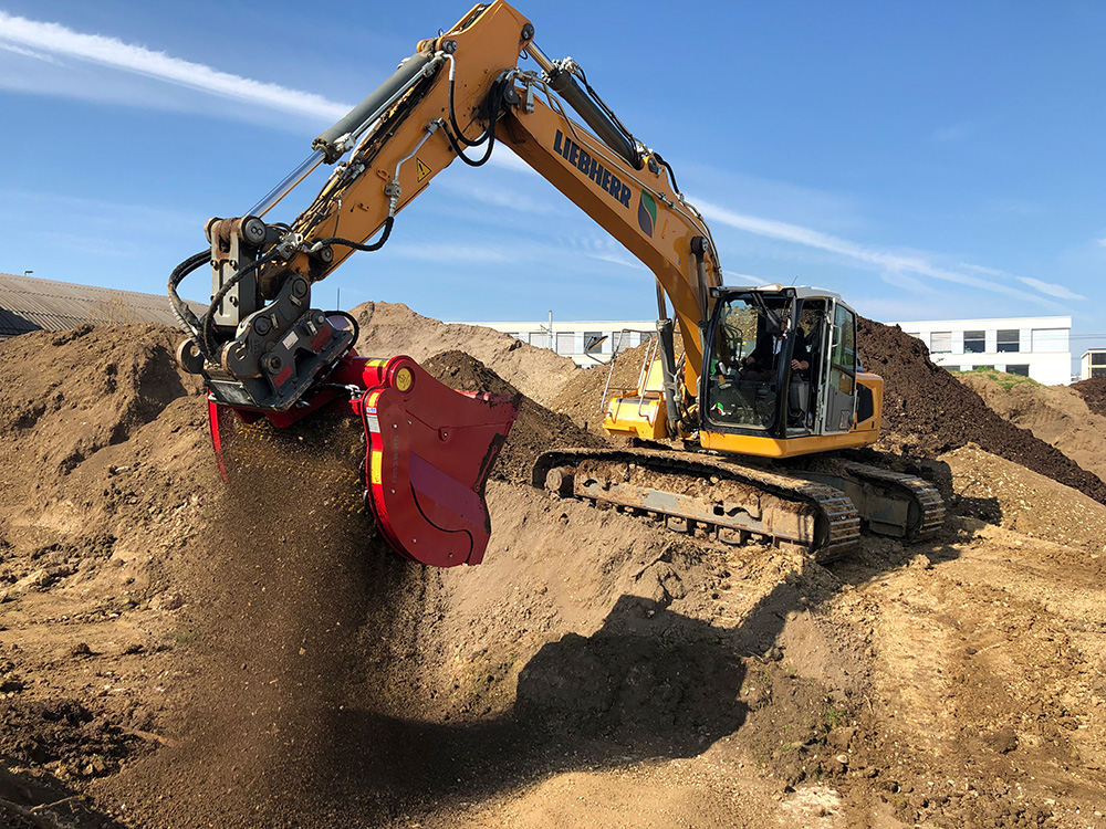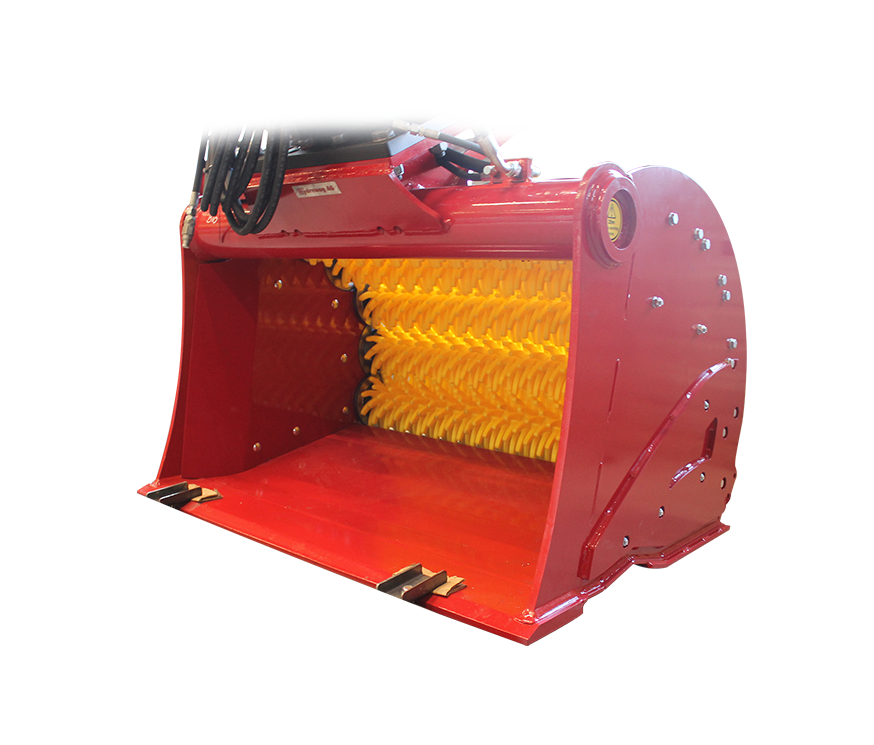 Der Rotastar Sieblöffel hat ein einzigartiges Siebverfahren. Er rotiert das Material in einer ähnlichen Art und Weise wie ein Trommelsieb, hat jedoch den Vorteil der rotierenden Polyurethan-Sterne, welche das Material während der Umdrehung schütteln und krallen, aber nicht zusammendrücken und zerhacken. Auch ist es möglich feuchtes und spezielles Material zu sieben. Mit einer korrekten Konfiguration der Sterne sind Korngrössen von 0-10mm bis 0-80mm zu erreichen.