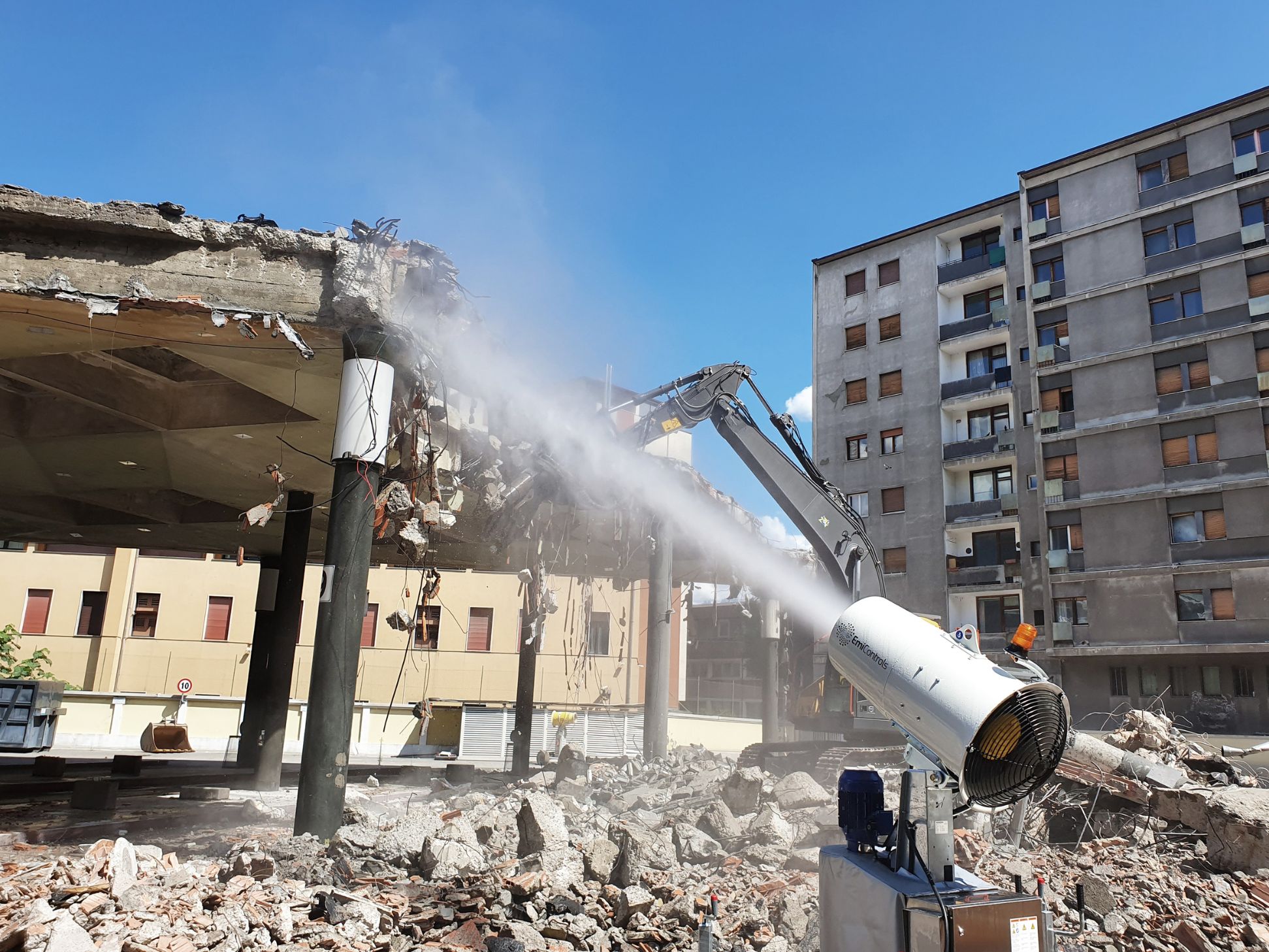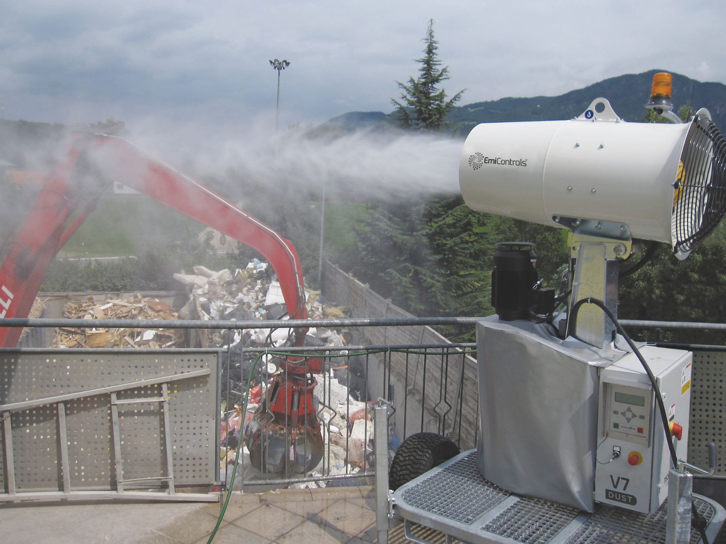 Die V7 ist die perfekte Lösung für die Staubbindung auf kleineren Flächen. Sie überzeugt durch ihren äusserst geringen Energieverbrauch von nur 10,5 kW und erreicht dennoch beeindruckende Wurfweiten von 30 bis 40 Metern. Ein besonderes Highlight ist die integrierte Druckerhöhungspumpe. Sie ermöglicht den Betrieb des im Inneren der Turbine platzierten Düsenkopfs auch ohne laufenden Turbinenmotor – für maximale Flexibilität und Effizienz im Einsatz.