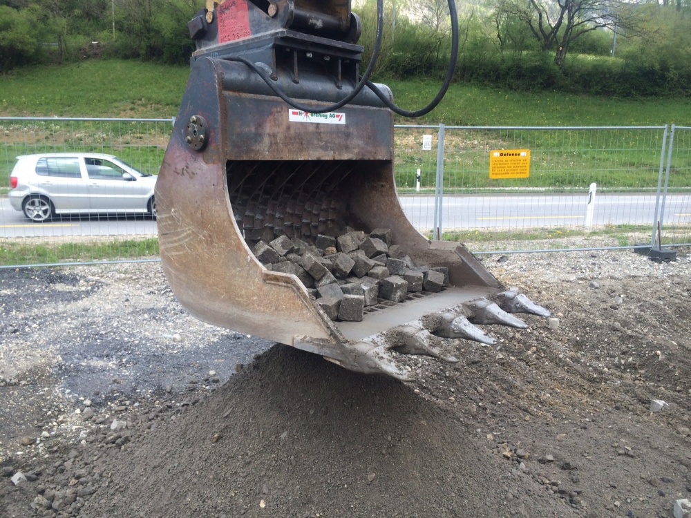 Die Siebschaufel B eignet sich perfekt für das Sieben von losem Material wie Humus, Mischabbruch und Kies. Mit ihren beweglichen Streben ermöglicht sie eine effiziente Trennung der Materialien. Diese Gerät ist bedingt geeignet für den Einsatz mit Schreitbaggern zum Laufen.