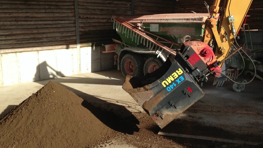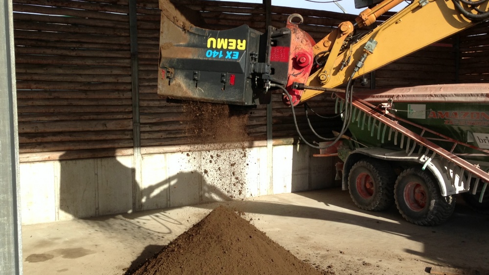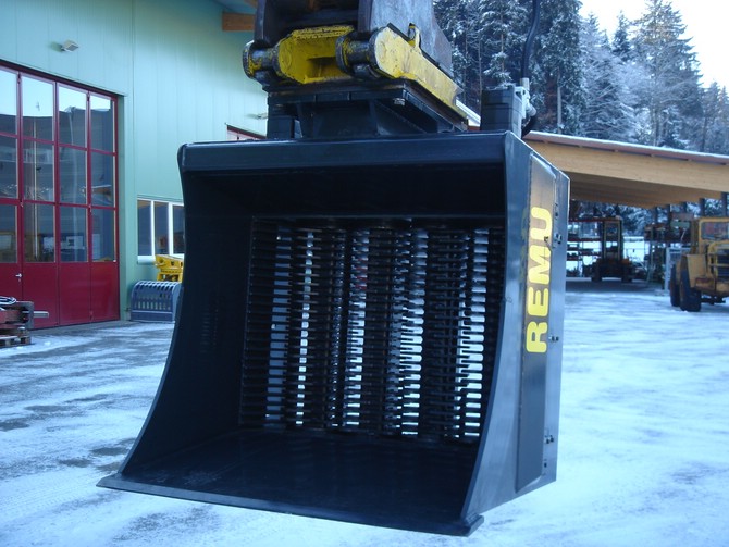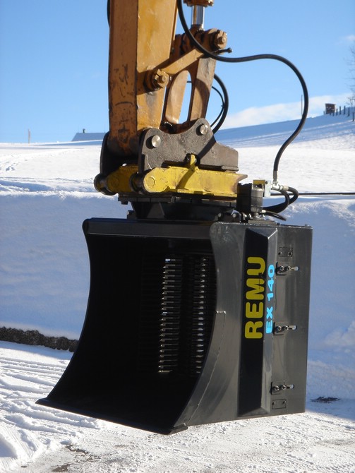 Die Siebschaufel EX ist mit rotierenden Wellen ausgestattet und bietet eine effiziente Methode zum Sieben verschiedener Materialien. Verschiedene Wellentypen stehen zur Verfügung, um den Anforderungen unterschiedlicher Materialien gerecht zu werden. Bitte beachten Sie, dass die Siebschaufel EX nicht für den Einsatz mit Schreitbaggern geeignet ist.