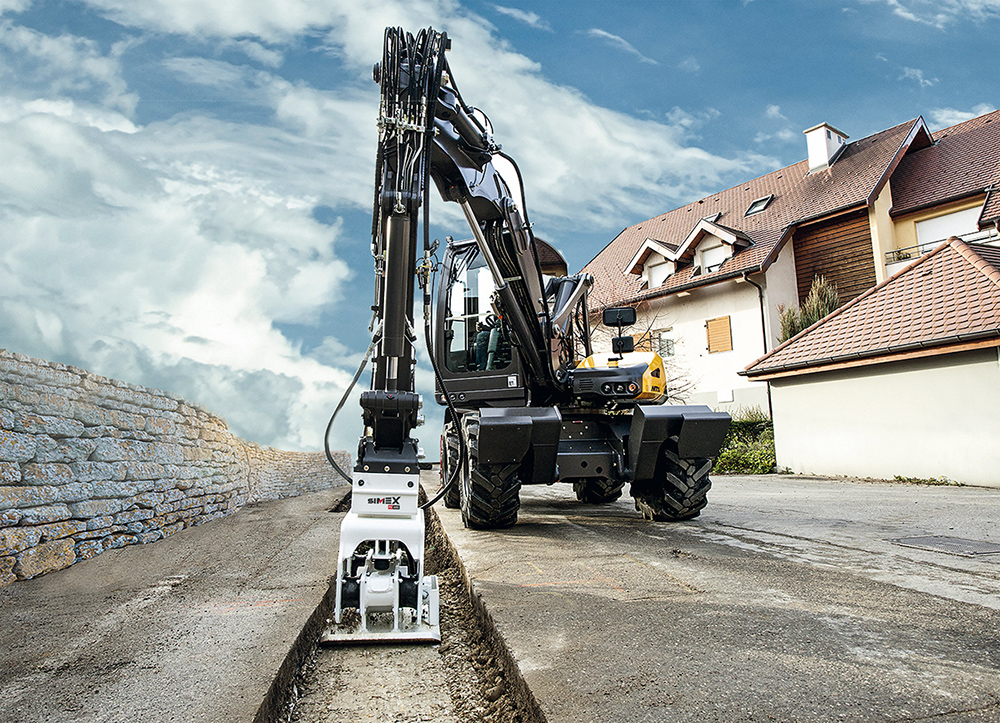 Durch den Einbau eines Drehmotors kann in jeder Position verdichtet werden, auch an schwer zugänglichen Stellen.